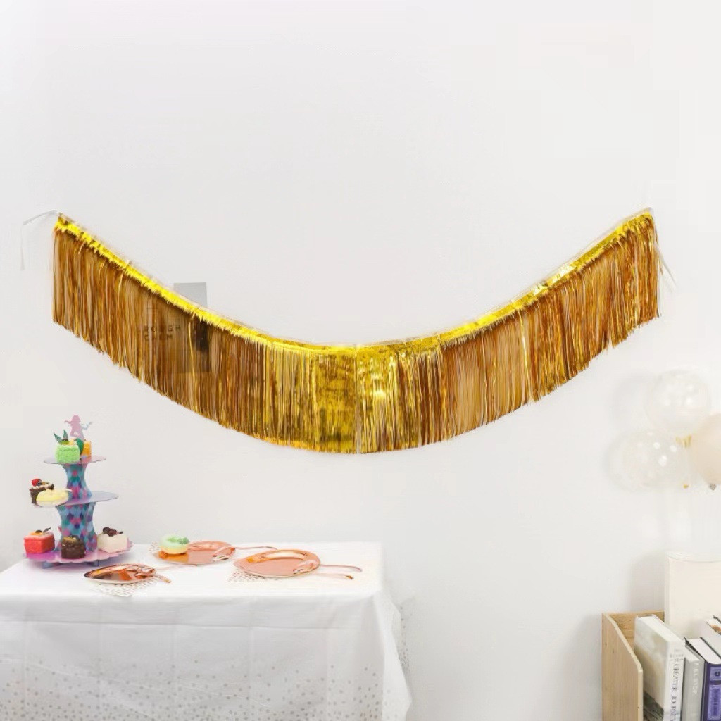 Гірлянда дощик для фотозони 180 на 35 см золотистий
